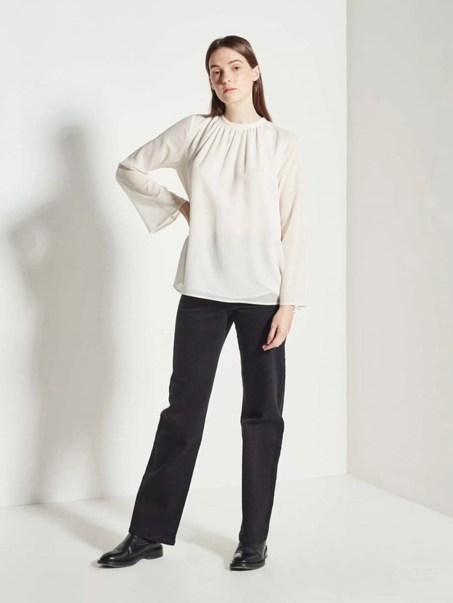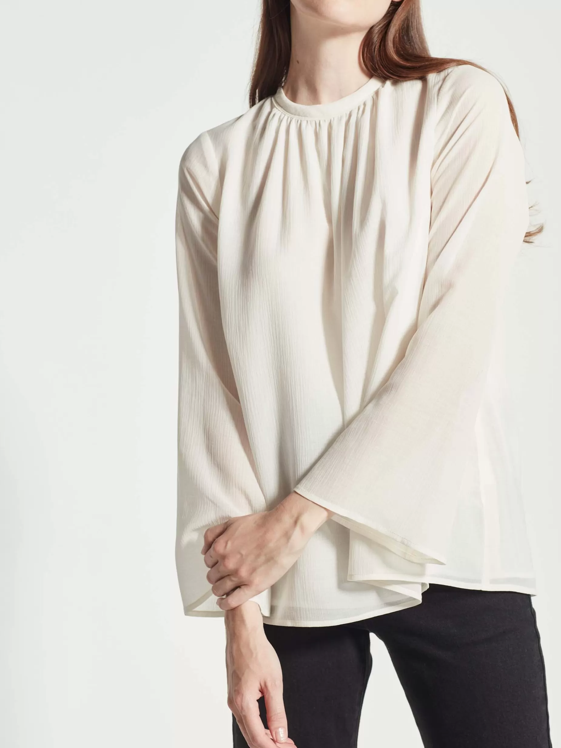 The Arden Blouse Is A Minimalist Chic Style, An Easy-Addition To Any Wardrobe. Featuring Transparent Silk-Blend Sleeves, A Gathered Rounded Neckline And A Lined Bodice.