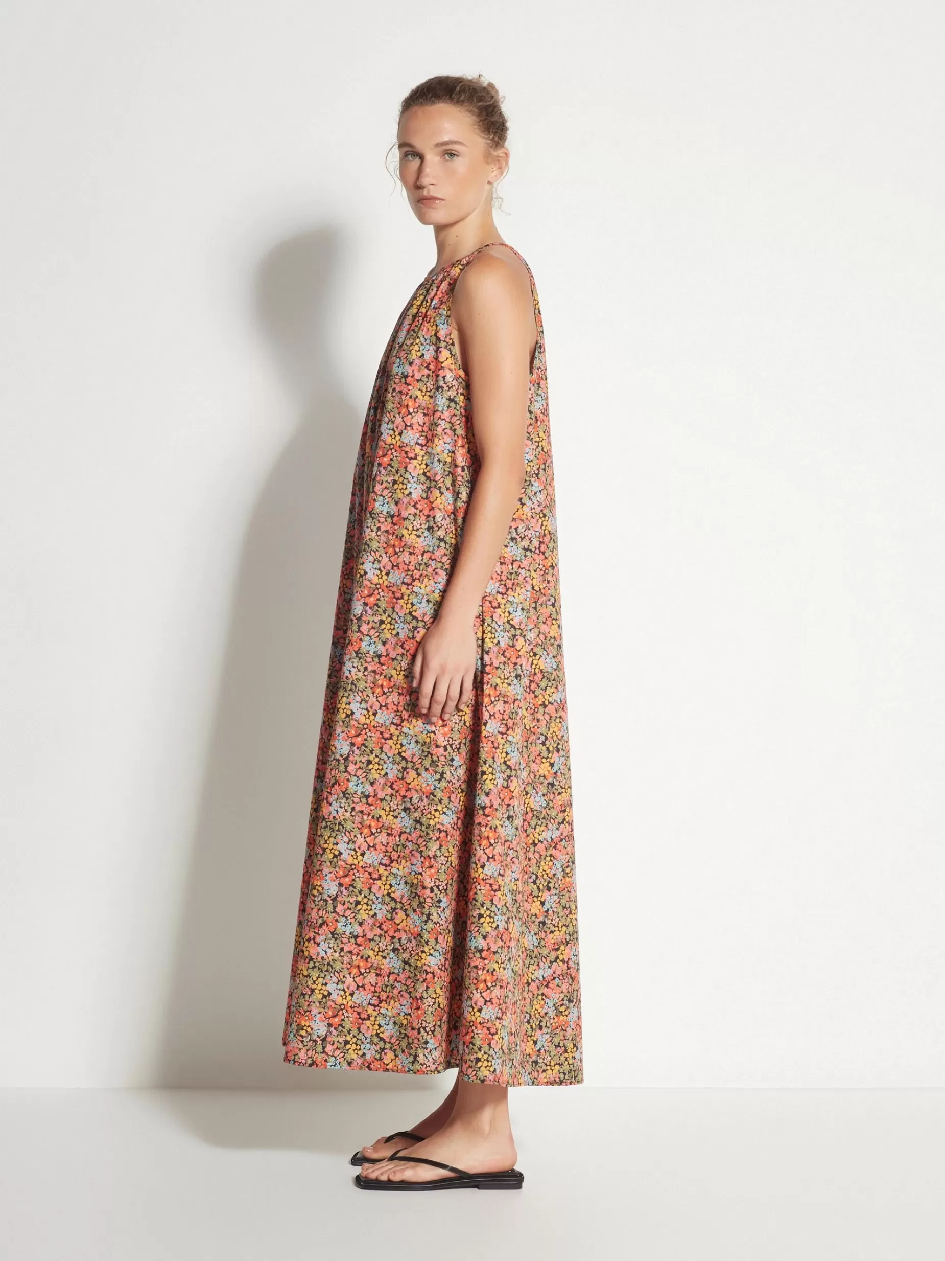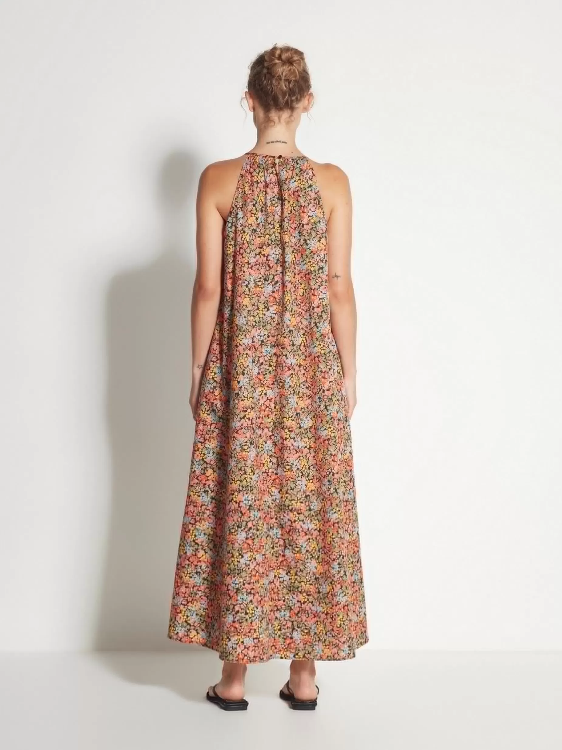 The Astrid Dress Is A Sleek Summer Style, Featuring A Halter Neckline Elegantly Revealing The Top Of The Shoulders And Loosely Falling Down The Frame. Created In 100% Cotton And Featuring A Pop Floral Print, Accessorize Yours With Slides And A Tote.