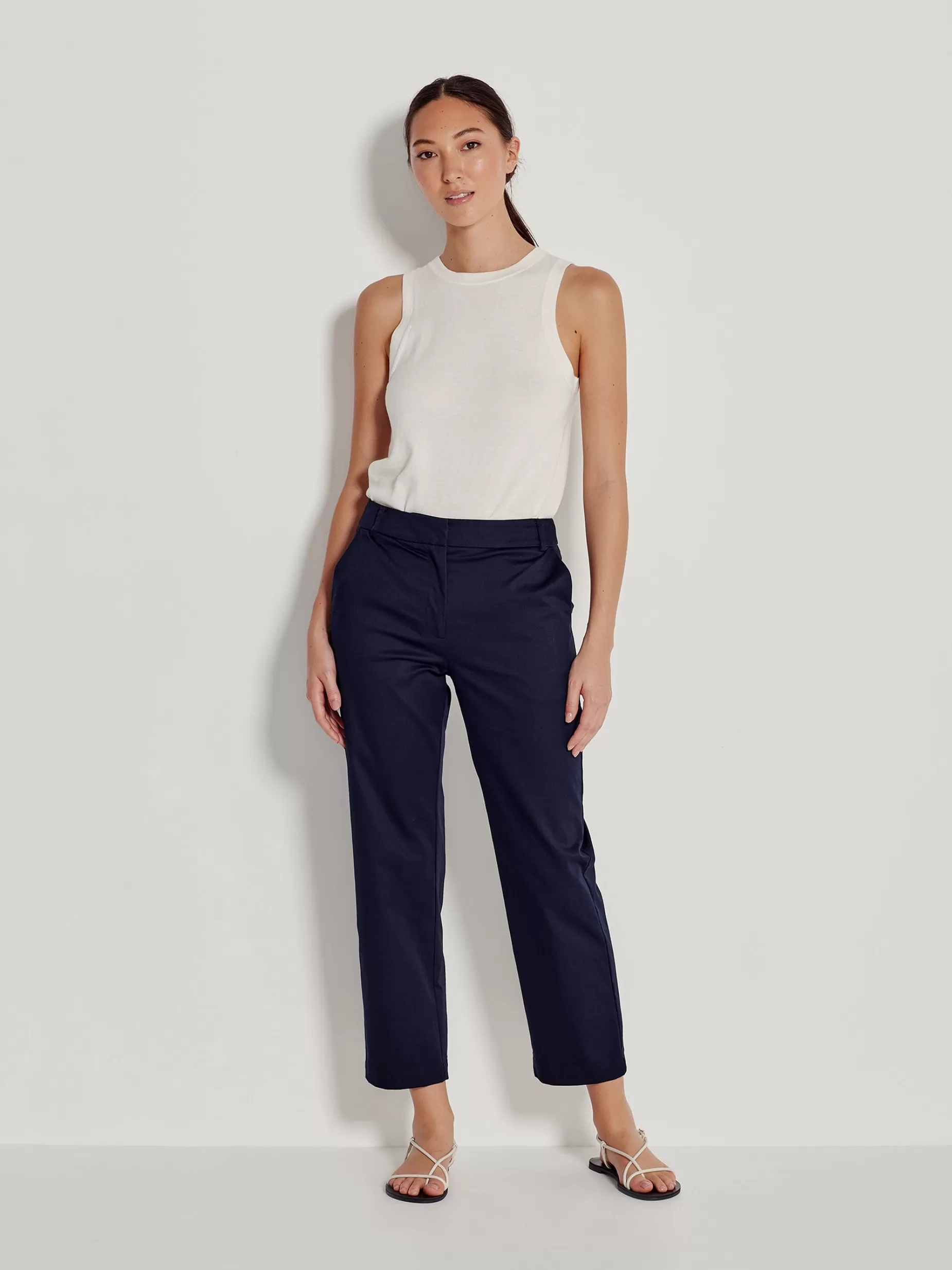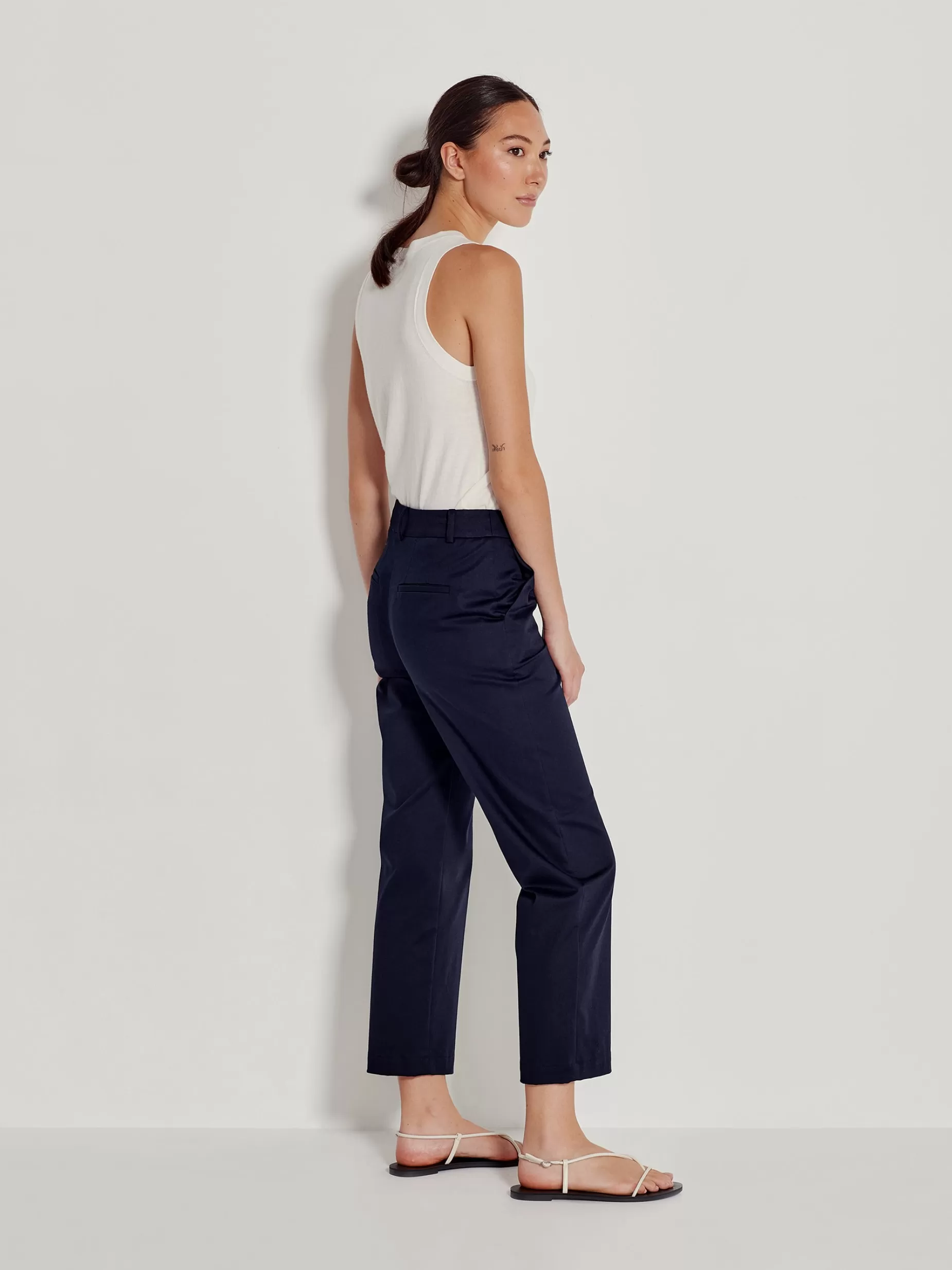Made For Everyday Wear, The Chino Pant Is A Straight Leg Trouser With A Slight Stretch, Providing A Comfortable Fit. Perfectly Paired With A Crisp Shirt And Sandals. Flat Waistband With Zip And Button ClosureSide PocketsStraight Leg CutSlightly Cropped To Finish At The AnkleAnna Wears A Size 8, She Usually Wears A Size S/8 And Is 181Cm Tall 97% Cotton 3% Polyurethane100% Rayon LiningBreathable And Durable FabricCool Delicate Machine Wash SeparatelyDry In ShadeFabric Sourced Through Sunwell Co Ltd.Proudly Made In New Zealand By Jm Productions