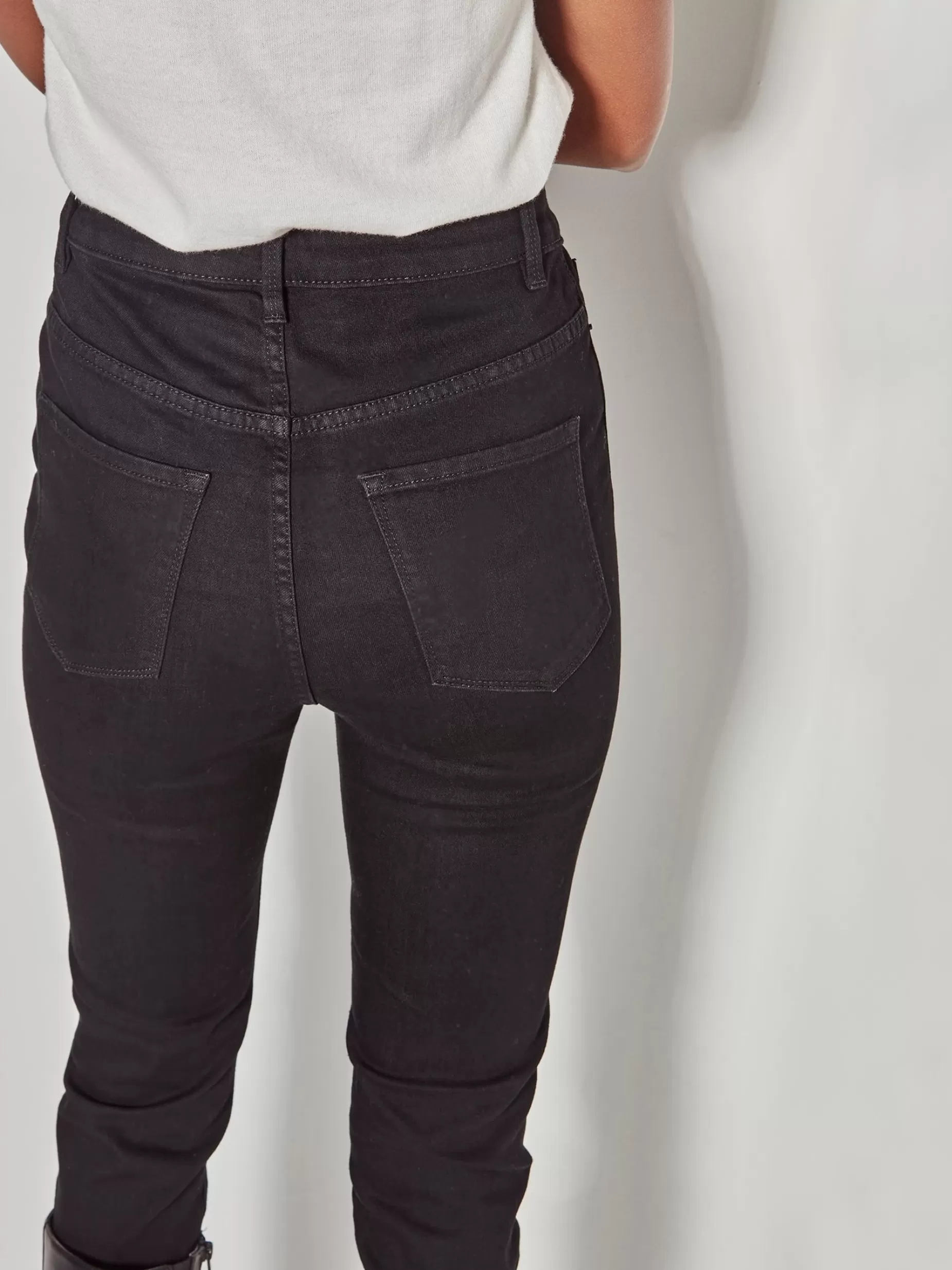 The High Waist Skinny Jean Is A Wardrobe Staple And The Perfect Pair To Take You From Day To Night. Available In Jet Black, The High Waist And Long Leg Elongates The Silhouette And Works Back With Juliette Hogan Collections Seamlessly. Made From 16Oz Japanese Denim, They Have A Soft Stretch And Work With With Juliette Hogan Collections Seamlessly.