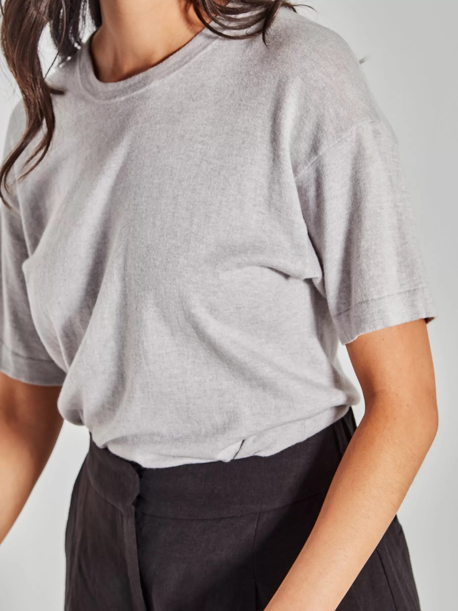 Our Refined Luxe T In A Medium Weight Knit Is A Great Wardrobe Basic With A Beautiful Soft Handle Made From 85% Cotton And 15% Cashmere Crew NecklineSits At Hip LengthA Neat FitModel Wears A Size S 85% Cotton, 15% CashmereMedium Weight Fine Gauge KnitGentle Handwash In Luke Warm Water & Lie Flat To Dry Out Of The SunMade In China