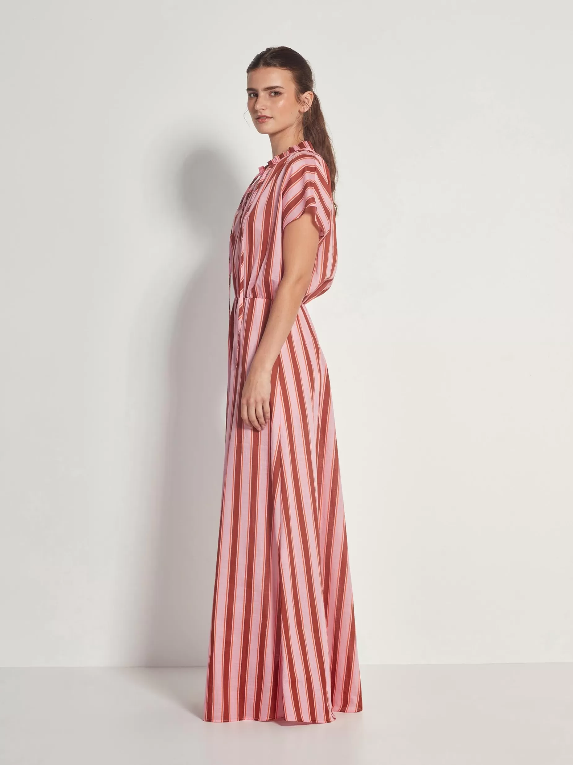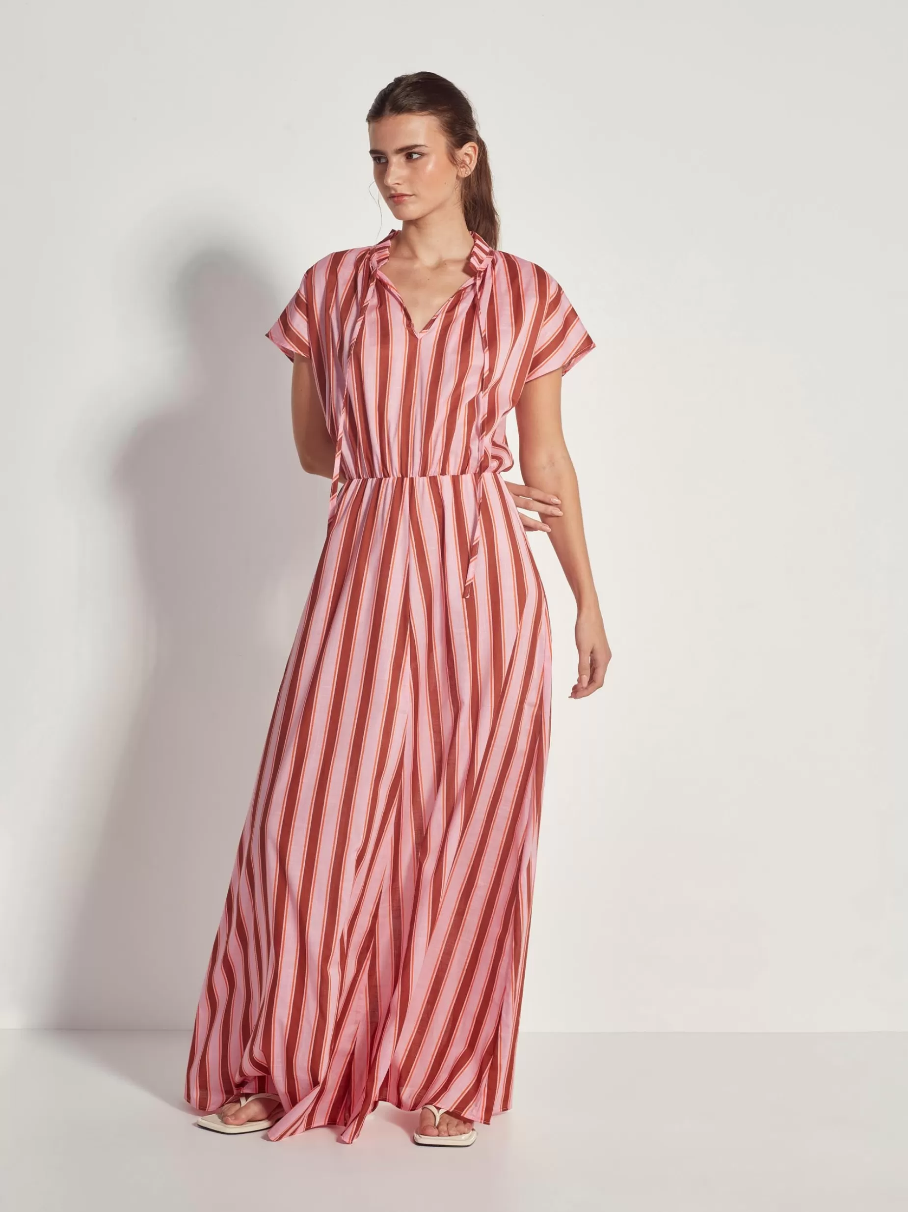 An Exclusive Jh Style, The Pamela Dress Is A Relaxed Full Length 70S Inspired Dress, Featuring A Cap Sleeve, Neck Tie And Delicate Ruffle Collar. Made From Our Cotton Sundae Stripe To Allow Breathability For The Summer Months.