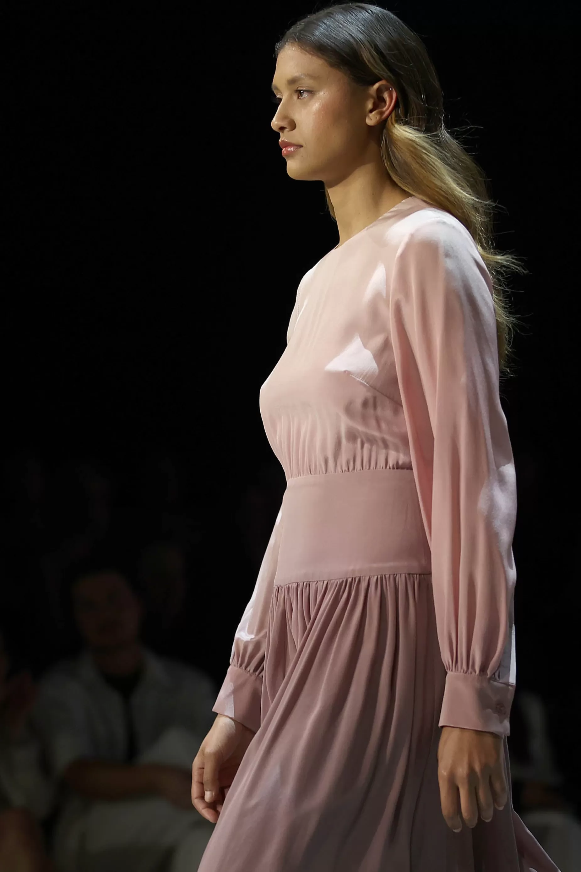 The Opening Look Of The Show. An Elegant, Fluid Maxi Dress With An Ombre Blush Hue With A Fitted Waist And A Dramatic Open Back. The Sundown Dress Features A Discreet Zip At The Lower Back, A Button Closure At The Back Of The Neck, And Full Length Cuff Sleeves. Exclusive One-Of-A-Kind Nzfw2023 Runway Piece Dramatic Open Back, From The Neck To The Lower Back A Discreet Zip Closure, As Well As A Minimal Button Closure At The Back Of The Neck Maxi Dress With Full Cuffed Sleeves 100% Silk Cdc Dry Clean Only Proudly Made In New Zealand